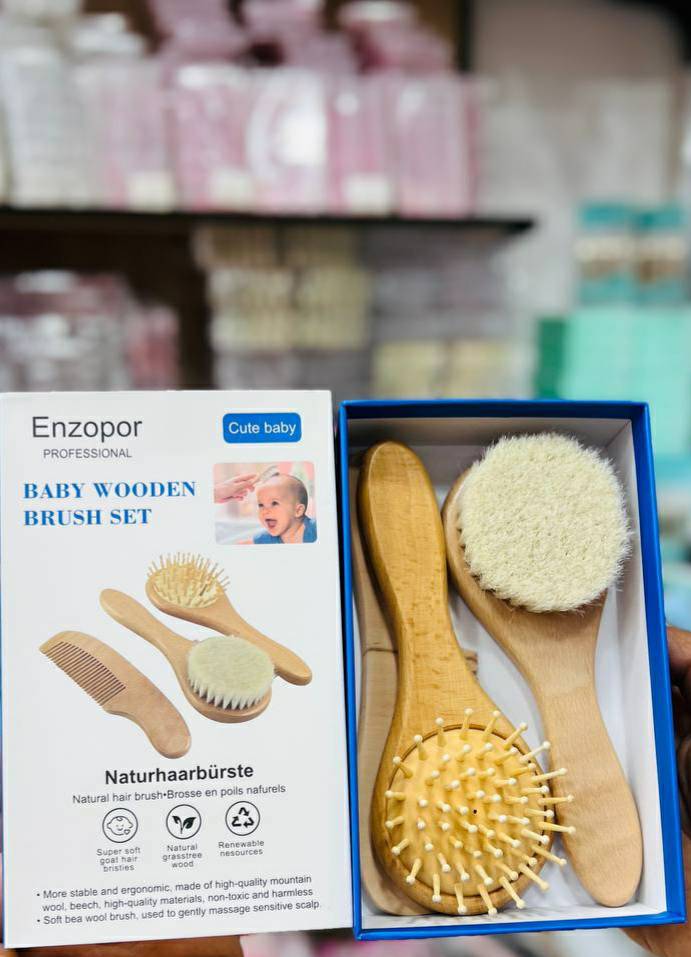 Brosse à cheveux pour bébé & amp; Ensemble de peigne, brosse à cheveux en bois biologique,