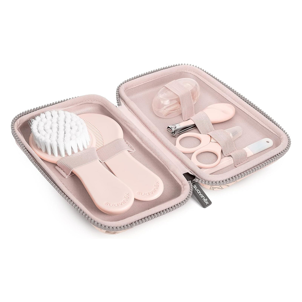 Afin de faciliter les soins de bébé, Suavinex a conçu cette magnifique Trousse de Toilette. Décorée de petits animaux, elle contient les produits essentiels pour prendre soin de votre enfant dès ses premiers mois.